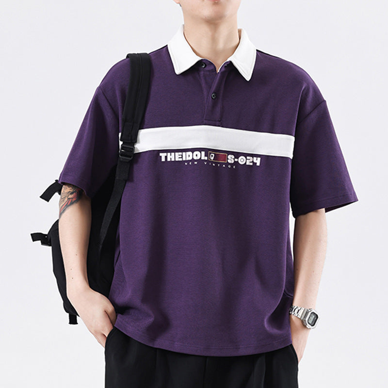 Garry – T-shirt à col rabattu avec rayures vintage et contraste de couleurs