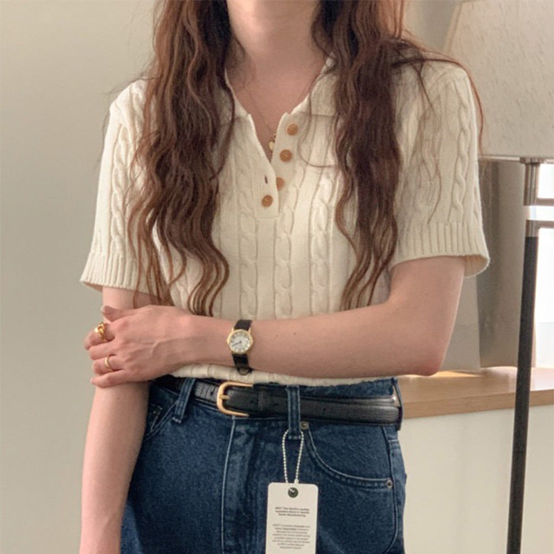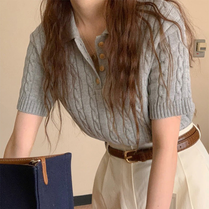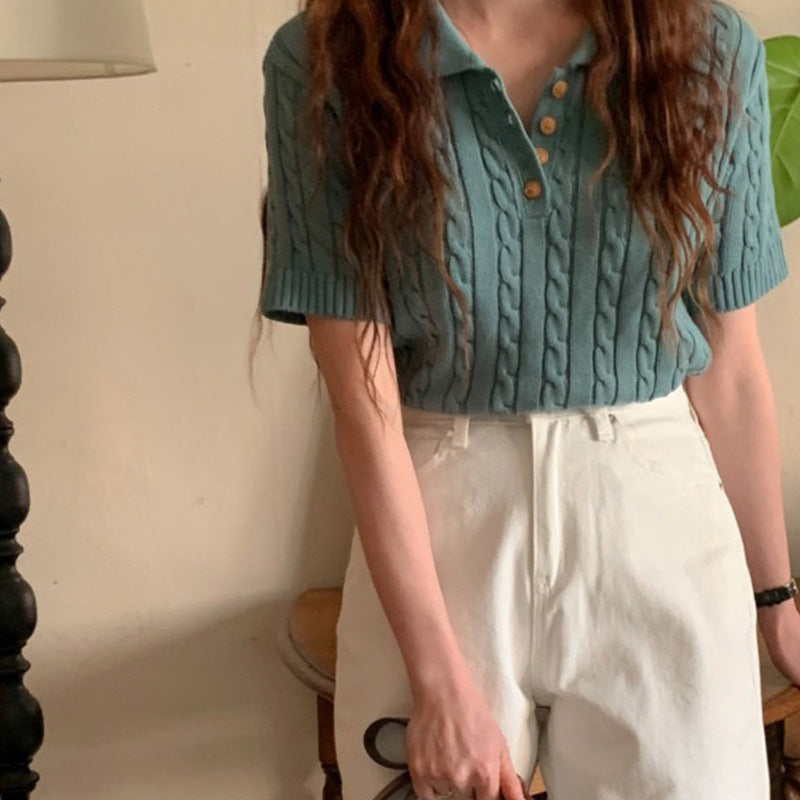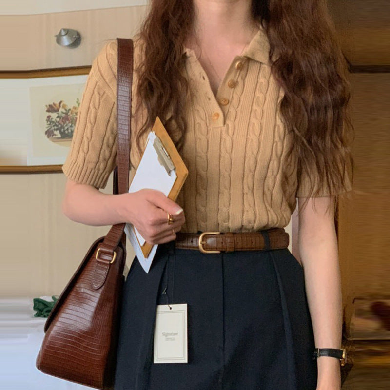 Ruby – Polo à Motif Chanvre, Manches Courtes, Détente Chic
